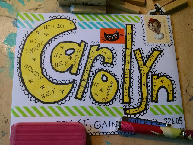 For those of you that do not see me on Facebook, here are a few more envelopes I did using the style of Devoted Diarist. Her style and technique is way more advanced, but I keep trying!